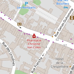 | Nom | Adresse | Code postal | Ville | Téléphone | Longitude | Latitude |