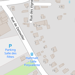 | 19 | A | 67330 | RUE DE DETTWILLER | HATTMATT | 1025196.1 | 6863605.2 | 7.428 | 48.79 | |